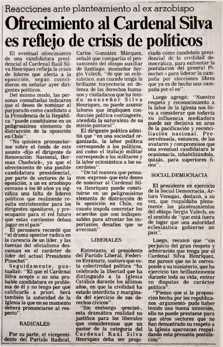 Ofrecimiento al Cardenal Silva es reflejo de...