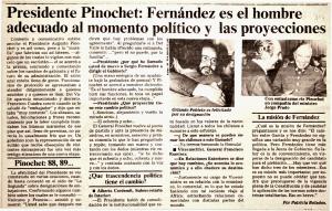 Presidente Pinochet: Fernándes es el hombre adecuado al momento político y las proyecciones