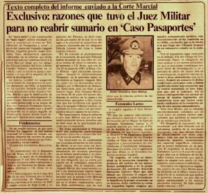 Exclusivo: razones que tuvo el Juez Militar para no reabrir sumario en "Caso Pasaportes"