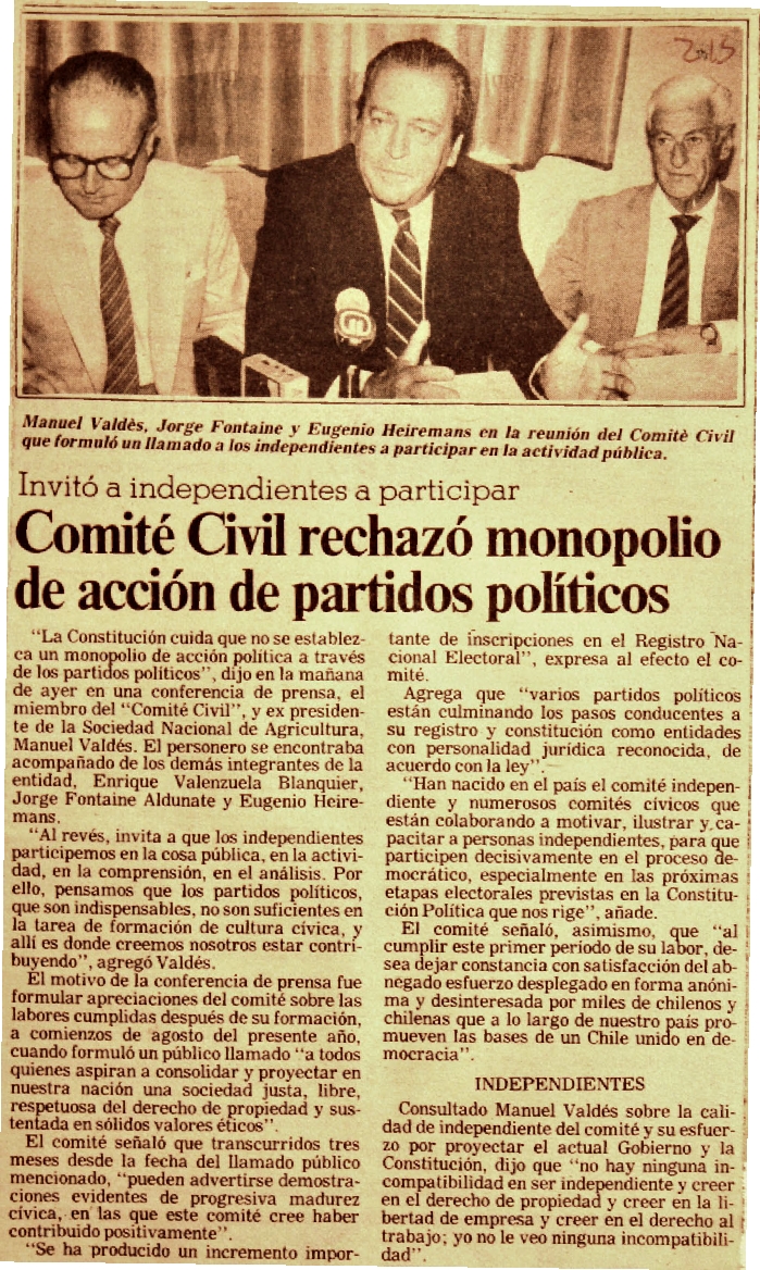 Comité civil rechazó monopolio de acción de partidos políticos.