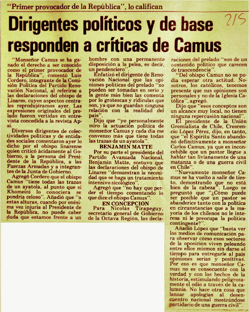 Las opiniones del prelado no pueden ser tomadas en serio, ya que no guardan relación con la realidad chilena.