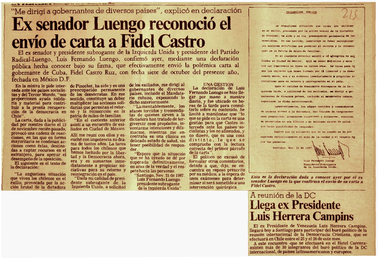 Ex senador Luengo reconoció el envío de carta a Fidel Castro.
