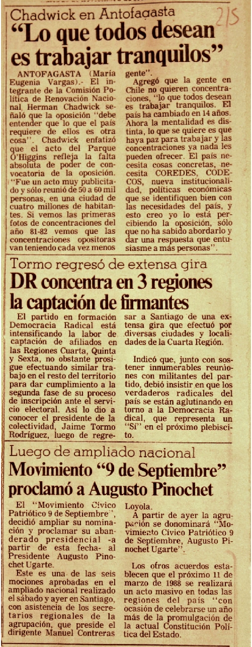 La Tercera, Santiago, 23 de Noviembre de 1987