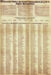 Declaración pública del comité independiente (C.I.) de la región Metropolitana.