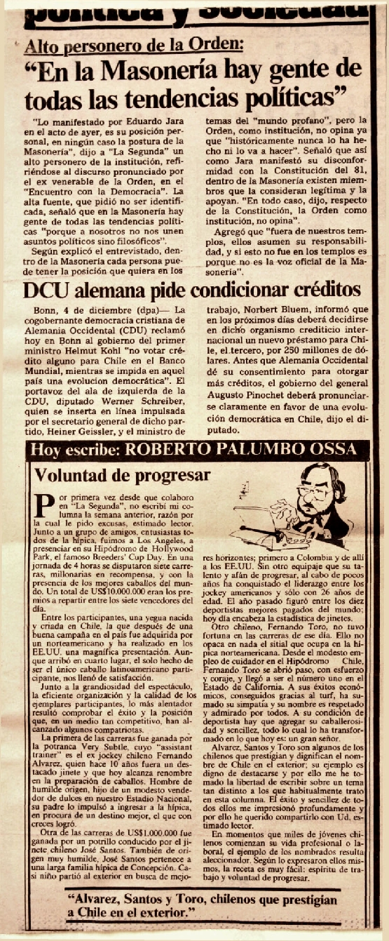 La Segunda, Santiago, 4 de Diciembre de 1987