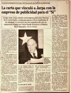 La carta que vinculó a Jarpa con la empresa de publicidad para el "Sí".