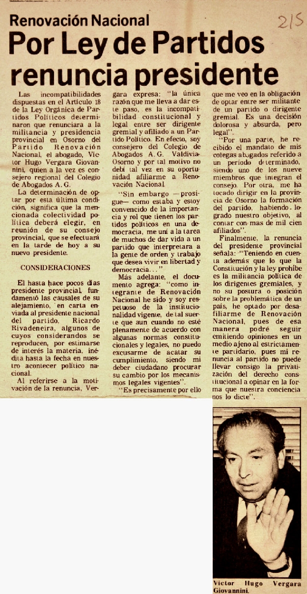 Por Ley de Partidos renuncia presidente.