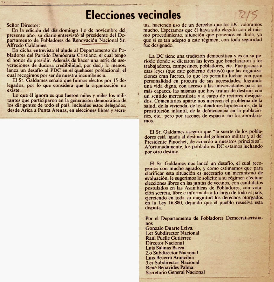 La suerte de los pobladores está ligada al destino del Gobierno militar y al del Presidente Pinochet.