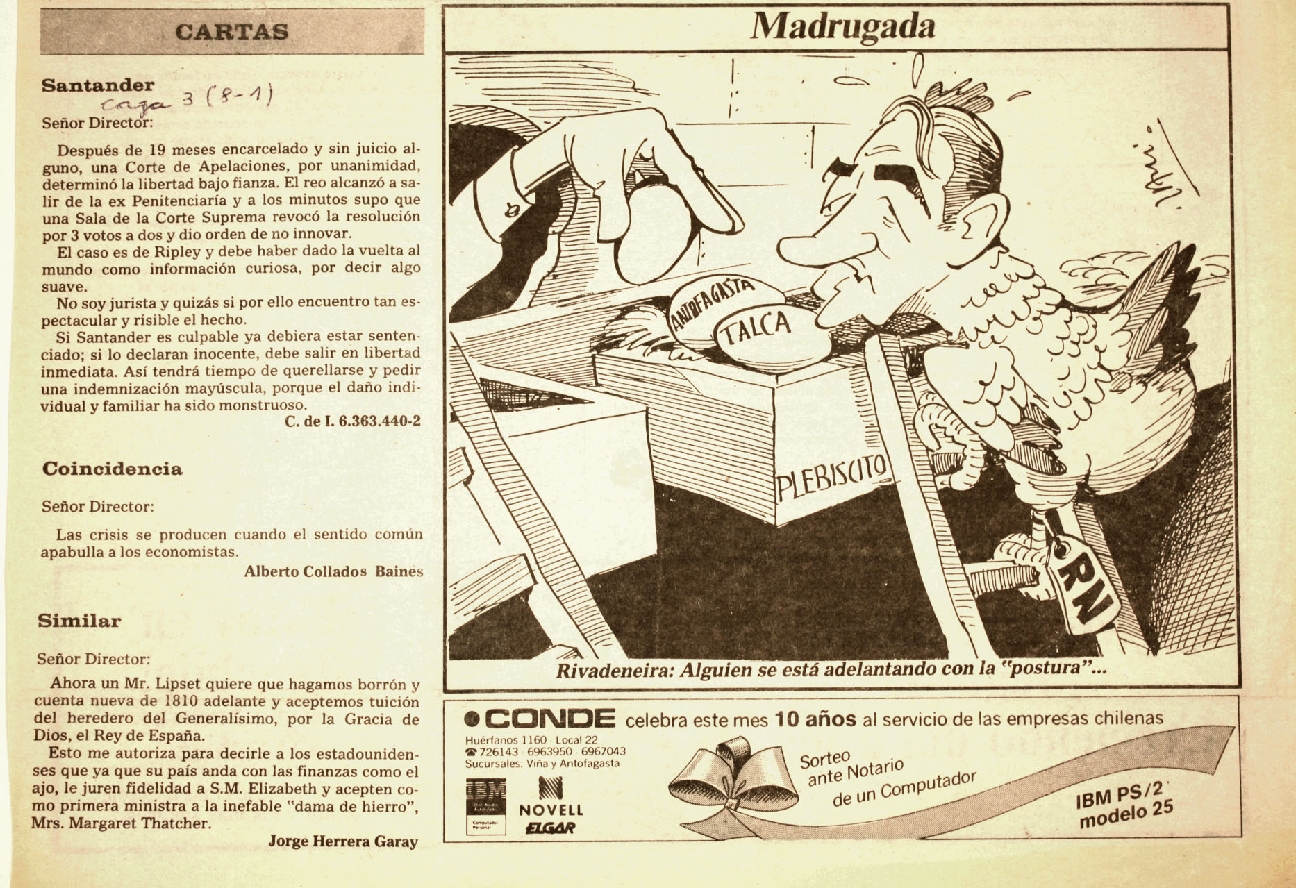 La Segunda, Santiago, 26 de noviembre de 1987, p. 5