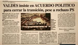 Valdés insiste en acuerdo polí vtico para cerrar la transición pese a rechazo de PS