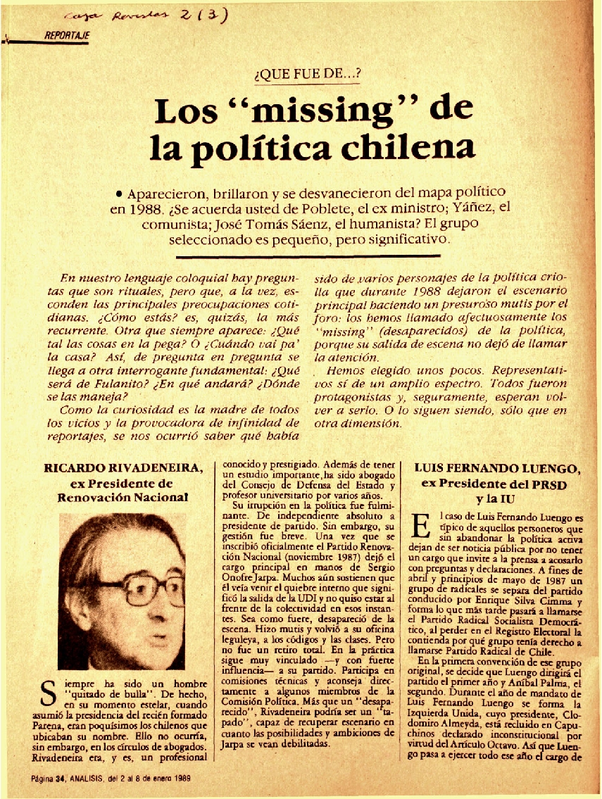Análisis, Santiago, 2 al 8 de enero de 1989, p. 34 - 37