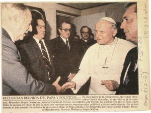 Fotografía de Ricardo Rivadeneira, Patricio Phillips, Sergio Molina con el Papa