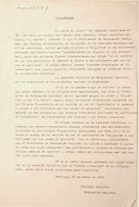 Comunicado a la prensa explicando renuncia a la Presidencia del Partido Renovación Nacional