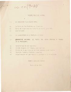 Informe presenta los siguientes puntos: La izquierda y la visirta papal. Convocatoria a la protesta de marzo. Renovación Nacional : el perfil del nuevo Partido a través de su Presidente