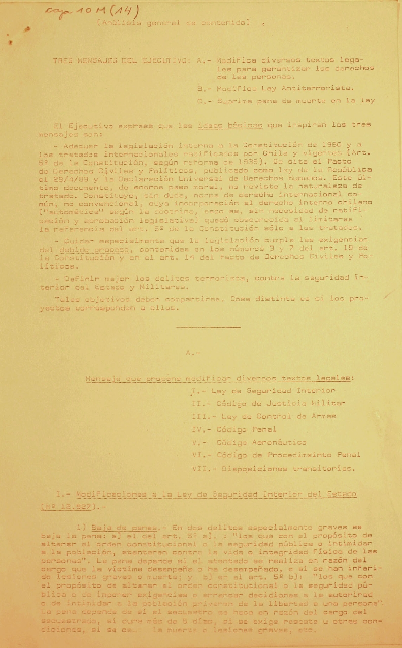 Tres mensajes del Ejecutivo: a) Modifica diversos textos legales para garantizar los derechos de las personas. b) Modifica Ley Antiterrorista. c) Suprime pena de muerte en la ley