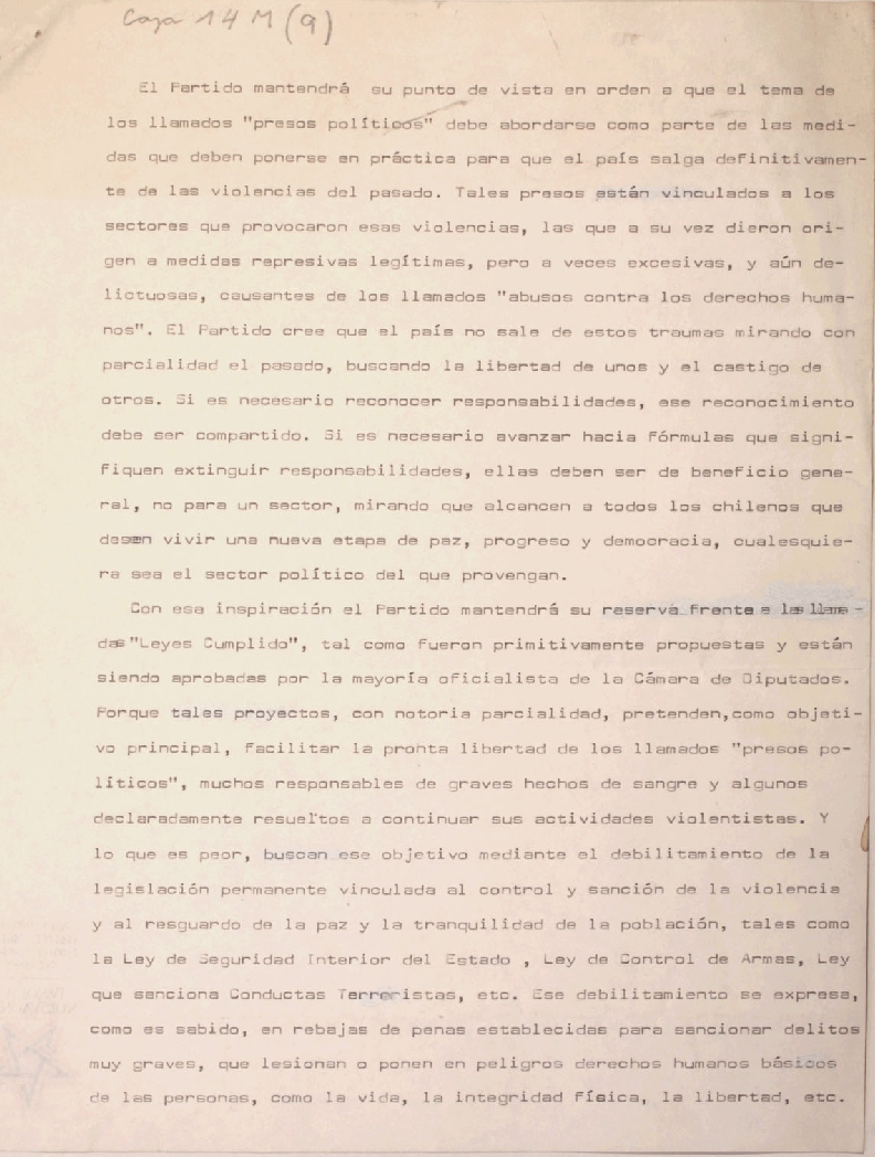 El Partido Renovación Nacional no quiere que el pasado sea motivo de división y odio entre los chilenos, motivo por el cual no dejará de denunciar todo aquello que atente en contra de la plena vigencia del estado de derecho