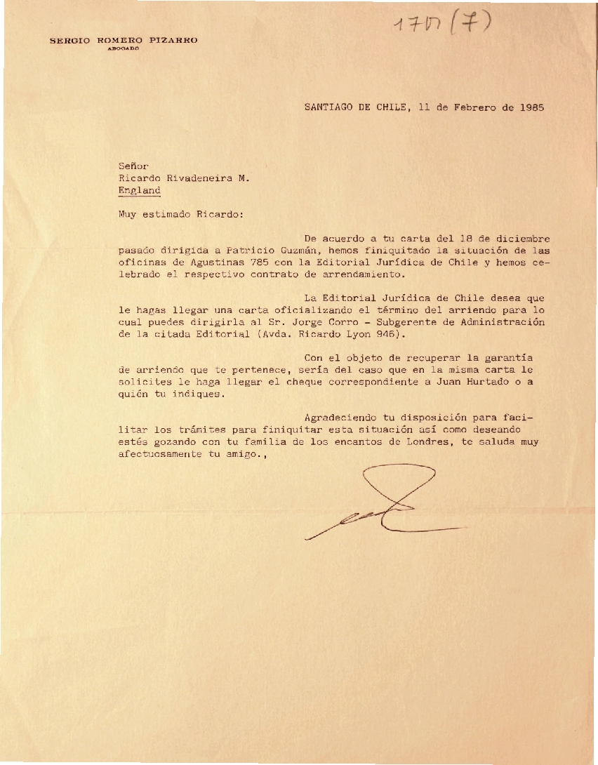 Carta dirigida a Ricardo Rivadeneira Monreal