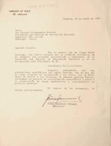 Carta dirigida a Ricardo Rivadeneira como Presidente de Renovación Nacional