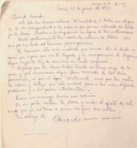 Comunica que ha recibido cheque, suma que queda a su disposición, afirma que la Comisión está muy enredada (es posible se refiera a la Comisión del Cobre en París)