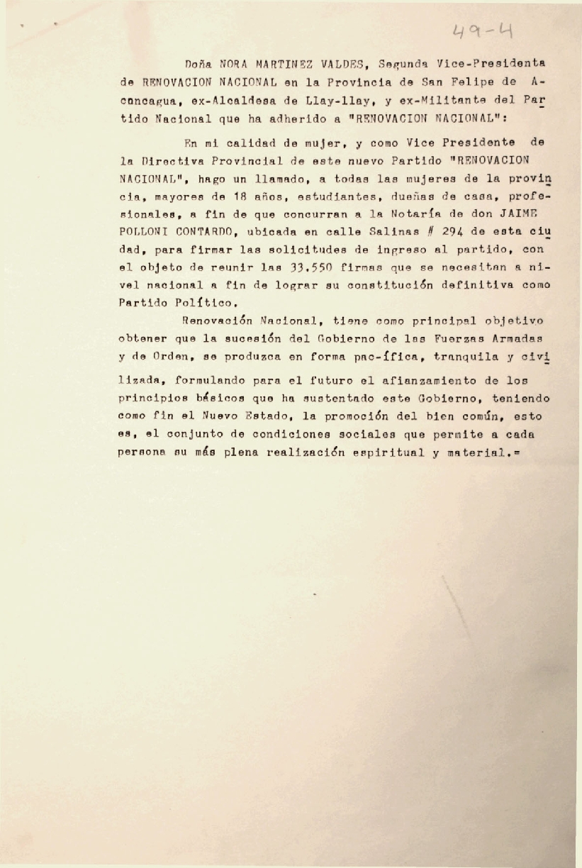 Llamado a afiliación al Partido Renovación Nacional Provincia de San Felipe