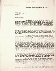 Carta respuesta a Francisco Prat respecto a sus declaraciones a la prensa sobre Plebiscito