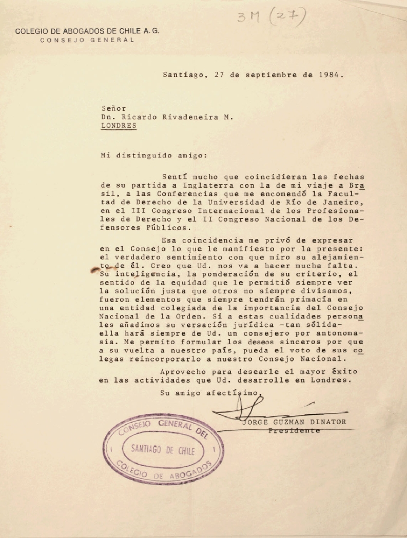 Santiago, 27 de Septiembre de 1984