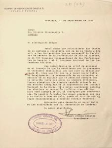 Carta dirigida a Ricardo Rivadeneira como Consejero del Colegio de Abogados
