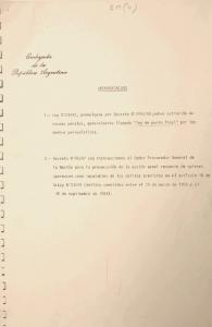 Documento con membrete de la Embajada de la República Argentina, Honorable Cámara de Diputados de la Nación, El Poder Ejecutivo Nacional