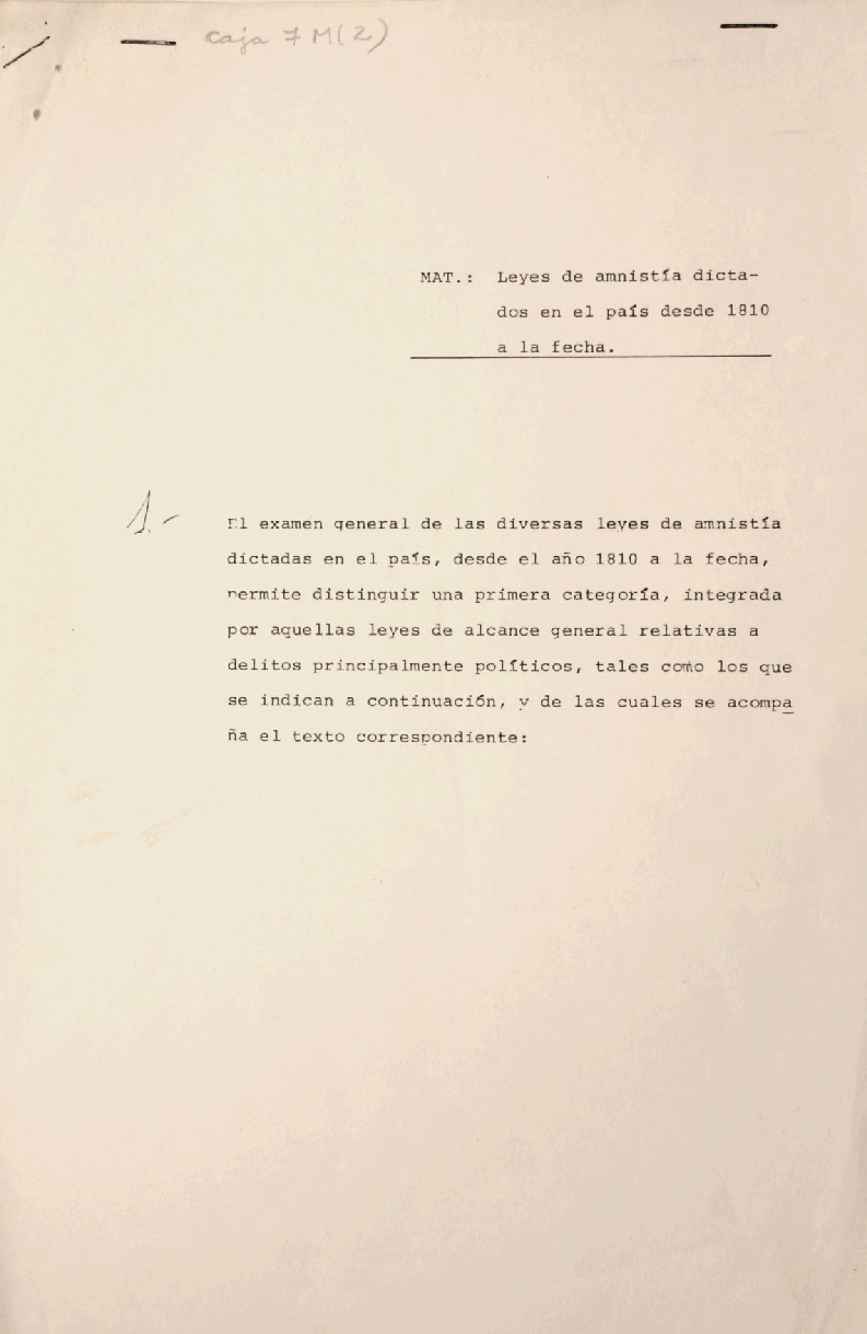 Leyes de amnistía dictadas en el país desde 1810 a la fecha