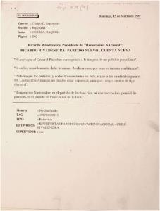 Expresa su pensamiento sobre el exilio, candidatos presidenciales que debn ser civiles, elegidos por los Partidos, afirma que Pinochet no corresponde a un político Portaliano, que Renovación Nacional no es el Partido de Pinochet ni de la Junta de Gobierno.O