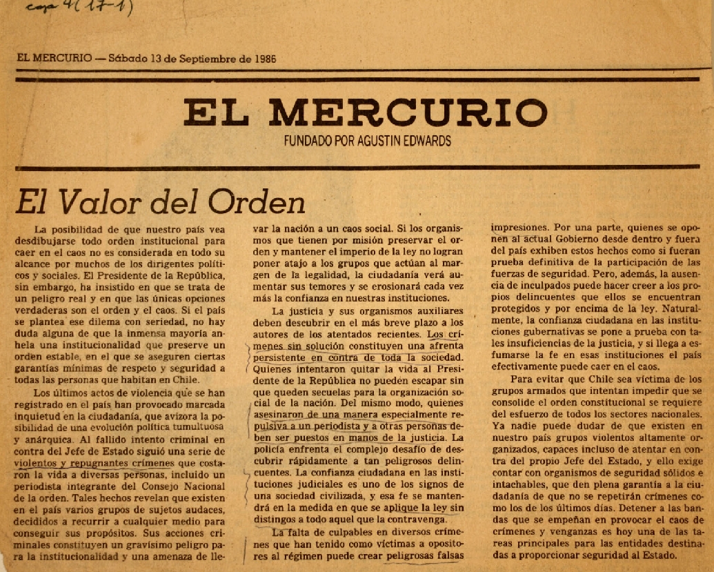 El Mercurio, Santaigo, 13 de sep. de 1986.