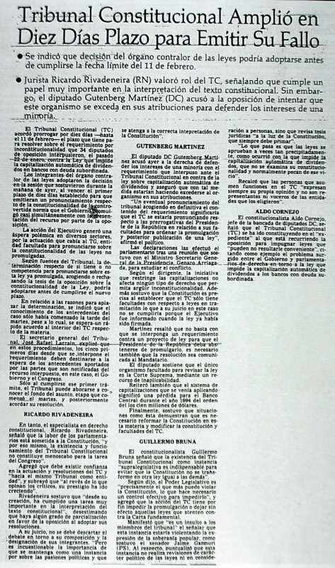 Tribunal constitucional amplió en diez días plazo para emitir su fallo
