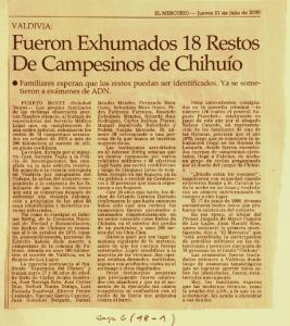 Fueron exhumados 18 restos de campesinos de Chihuío