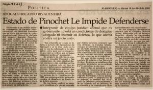 » Estado de Pinochet le impide defenderse : abogado Ricardo Rivadeneira
