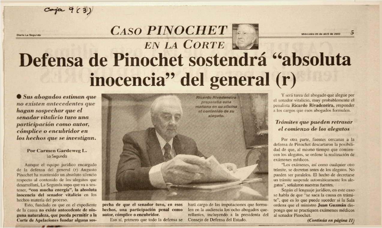 Defensa de Pinochet sostendrá "absoluta inocencia " del general (r)