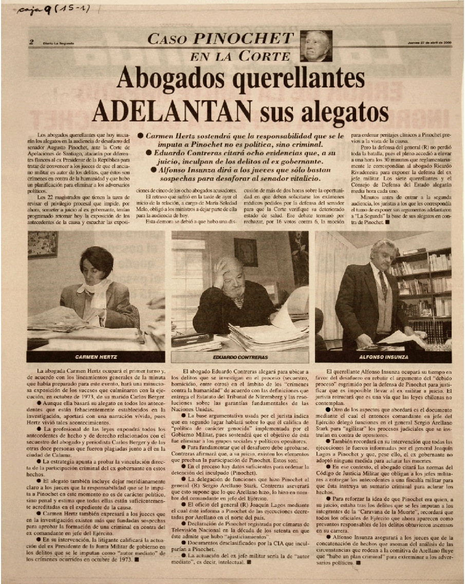 Caso Pinochet en la Corte : Abogados querellantes adelantan sus alegatos.