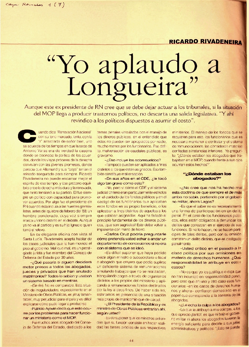 Ricardo Rivadeneira: Yo aplaudo a Longueira