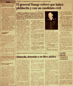 El general Stange reiteró que habrá plebiscito y con un candidato civil