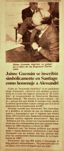 » Jaime Guzmán se inscribió simbólicamente en Santiago como homenaje a Alessandri.