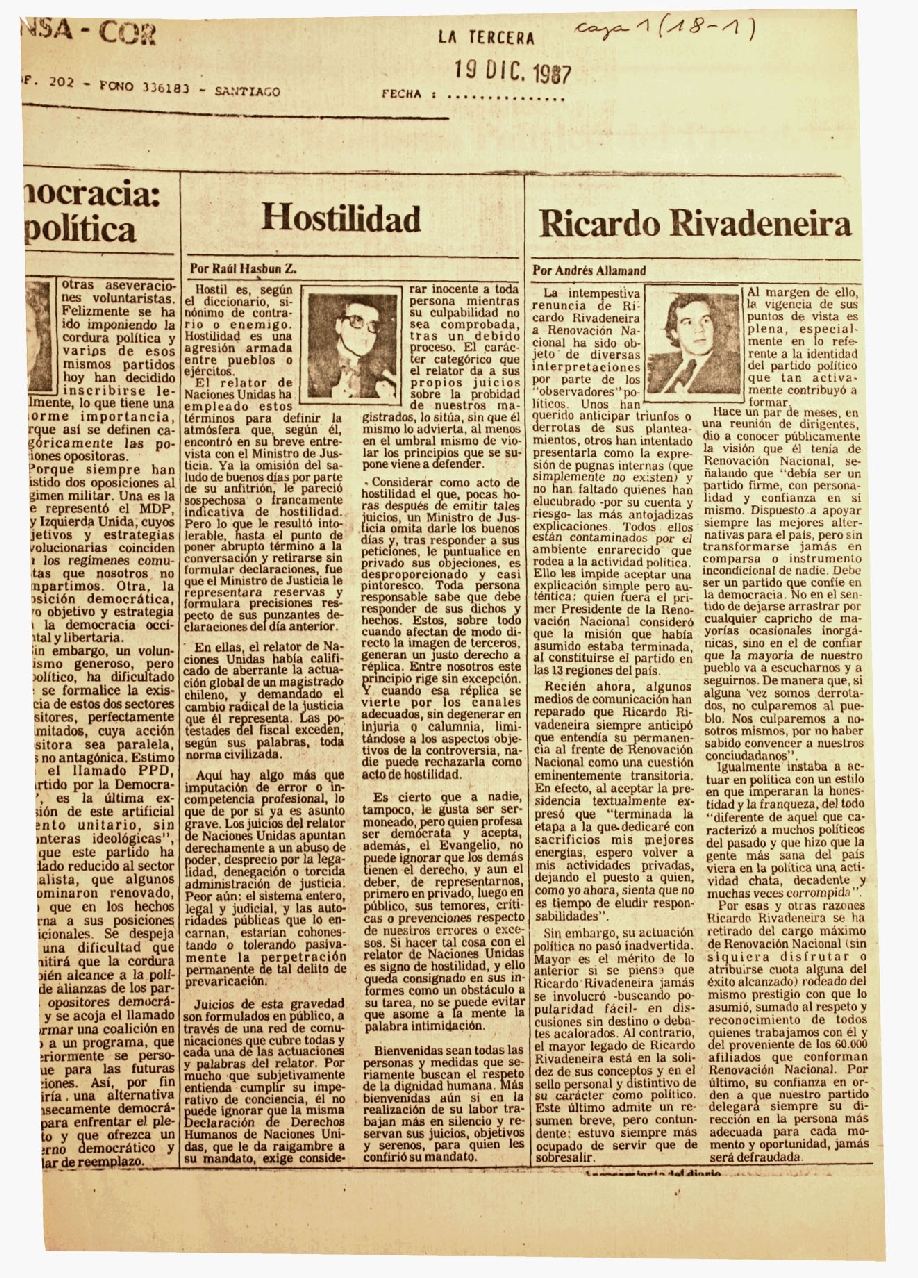 El art. se refiere a la entempestiva renuncia a la Presidencia del Partido Renovación Nacional de Ricardo Rivadeneira