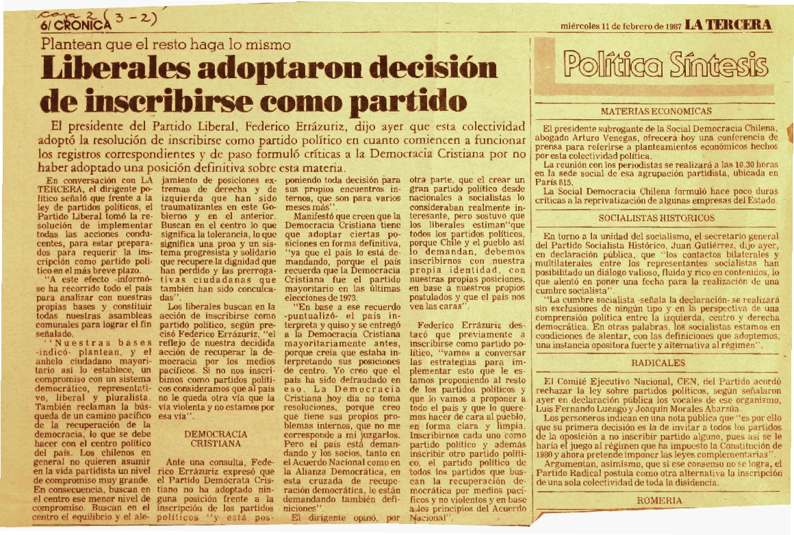 La Tercera, Santiago, 11 de feb. de 1987