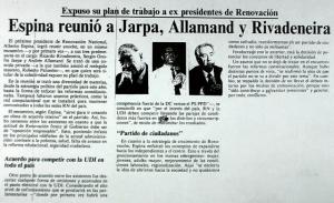 Expuso su plan de trabajo a ex presidentes de Renovación: Epina reunió a Jarpa, Allamand y Rivadeneira.
