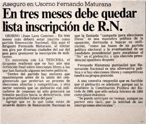 Fernando Maturana, dirigente del Partido Renovación Nacional afirmó que en 3 meses debe quedar el Partido inscito,