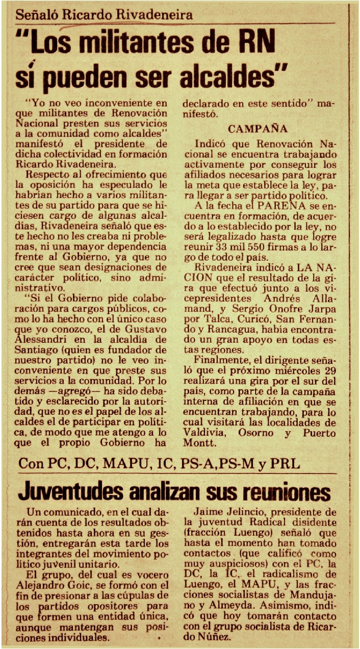 "Yo no veo inconveniente en que militantes de Renovación Nacional presten sus servicios a la comunidad como alcaldes".