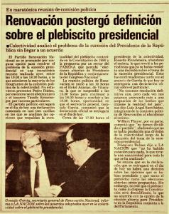 Colectividad analizó el problema de la sucesión del Presidente de la República sin llegar a un acuerdo.