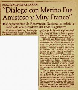 "Diálogo con Merino Fue Amistoso y Muy Franco"