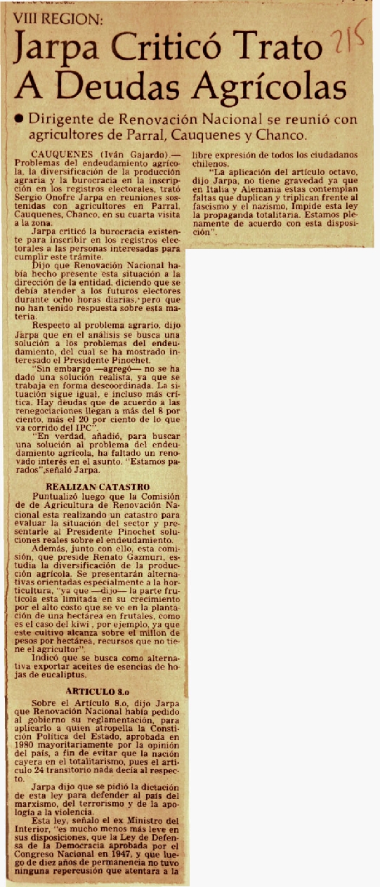 Dirigente de Renovación Nacional se reunió con agricultores de Parral, Cauquenes y Chanco.