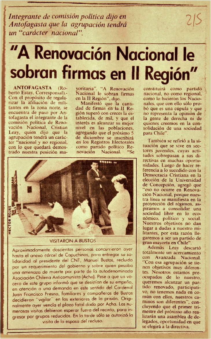 Ultimas Noticias, Santiago. 9 Noviembre 1987