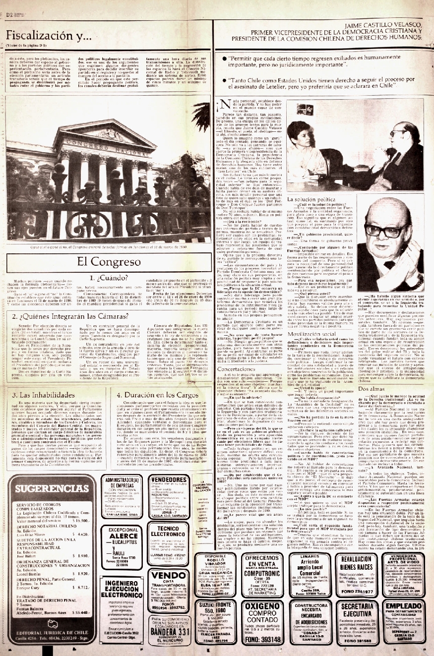 Contiene: .El PLEBISCITO, 1. El candidato 2. ¿Cuándo? 3. Si o No, 4. Fiscalización y propaganda. EL CONGRESO 1. ¿Cuando? 2. ¿Quiénes integran las Cámaras?, 3. Las inhabilidades, 4. Duración en los cargos