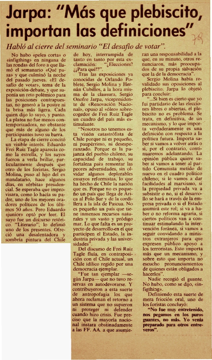 Jarpa: "Más que plebiscito, importan las definiciones"